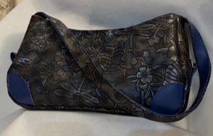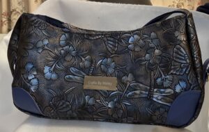 This is a must have for the minimalist. It is a small bag but plenty of room for wallet, cell phone, and other necessities with the slip pocket inside. It is vinyl on the exterior. The print is dragonfly. The interior is cotton. It has a matching mini NCW wallet sold separately. It has one…